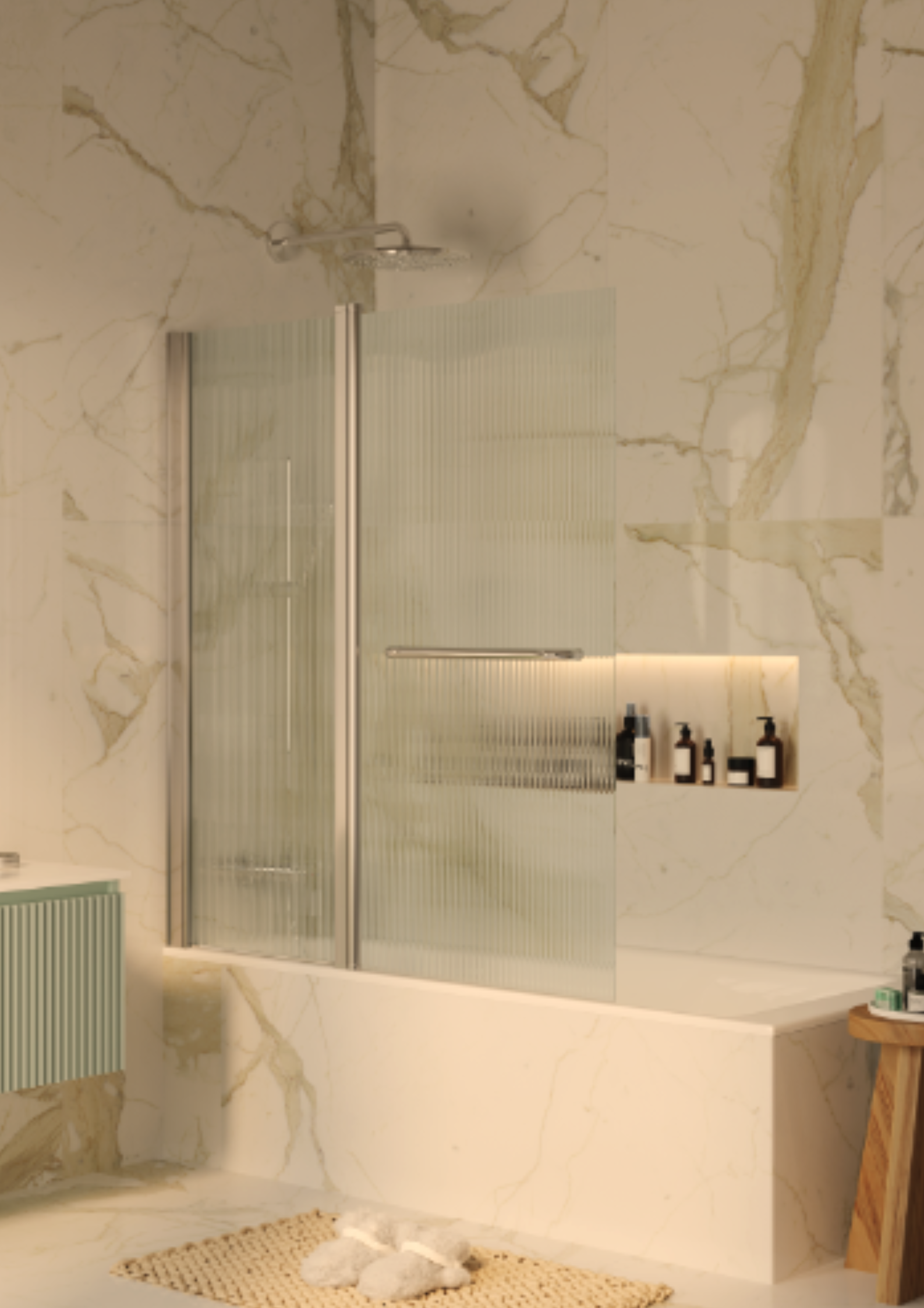 פרופיל אלומיניום, ידית מגבת, מוט חיזוק, זכוכית מחוסמת 6 מ"מ בגימור פליסה