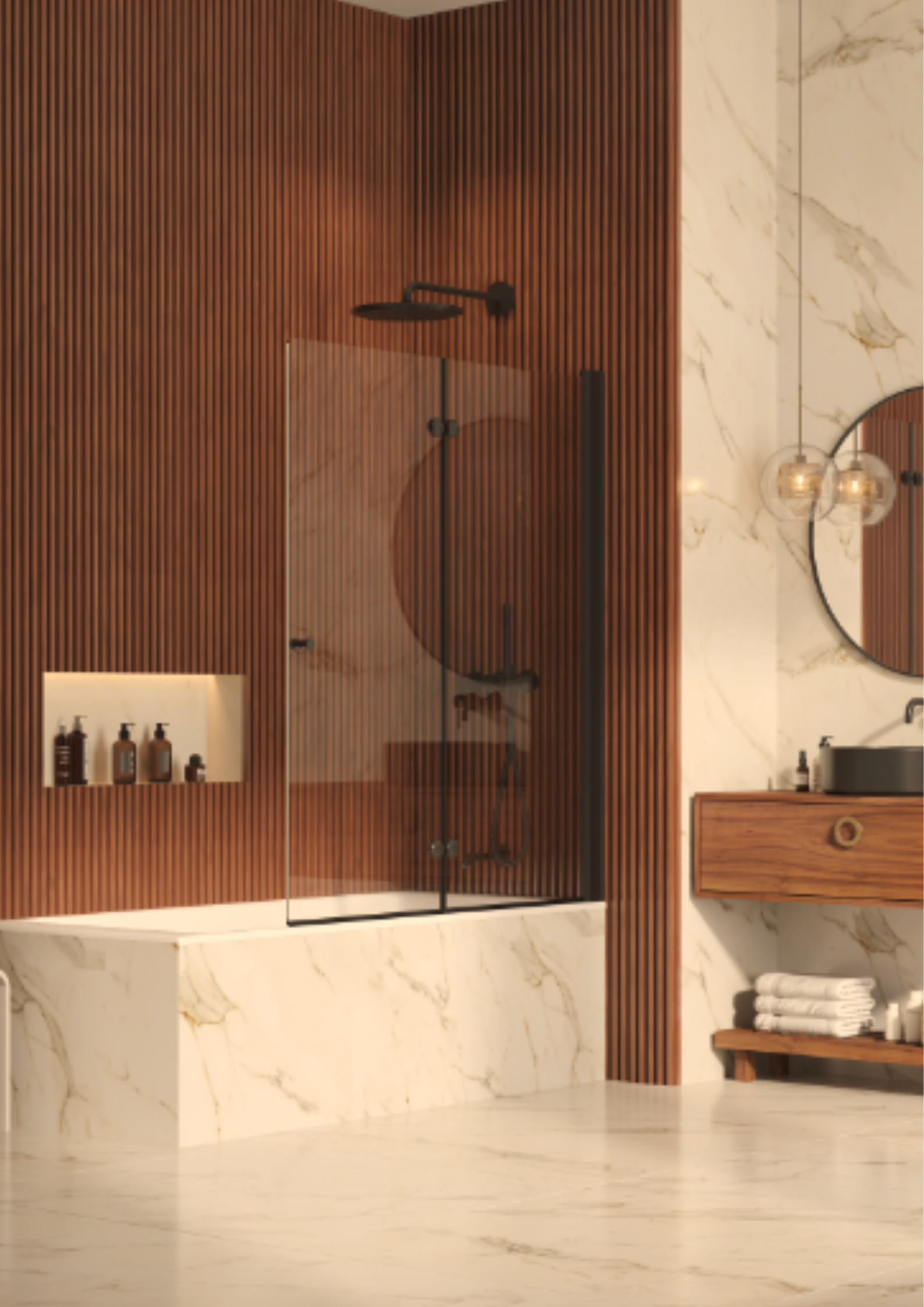 אמבטיון מג'יק פרזול שחור זכוכית שקופה 120 ס"מ NG