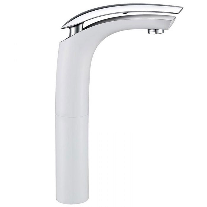 ברז אמבט גבוה פיה מסתובבת לבן מט ידית ניקל