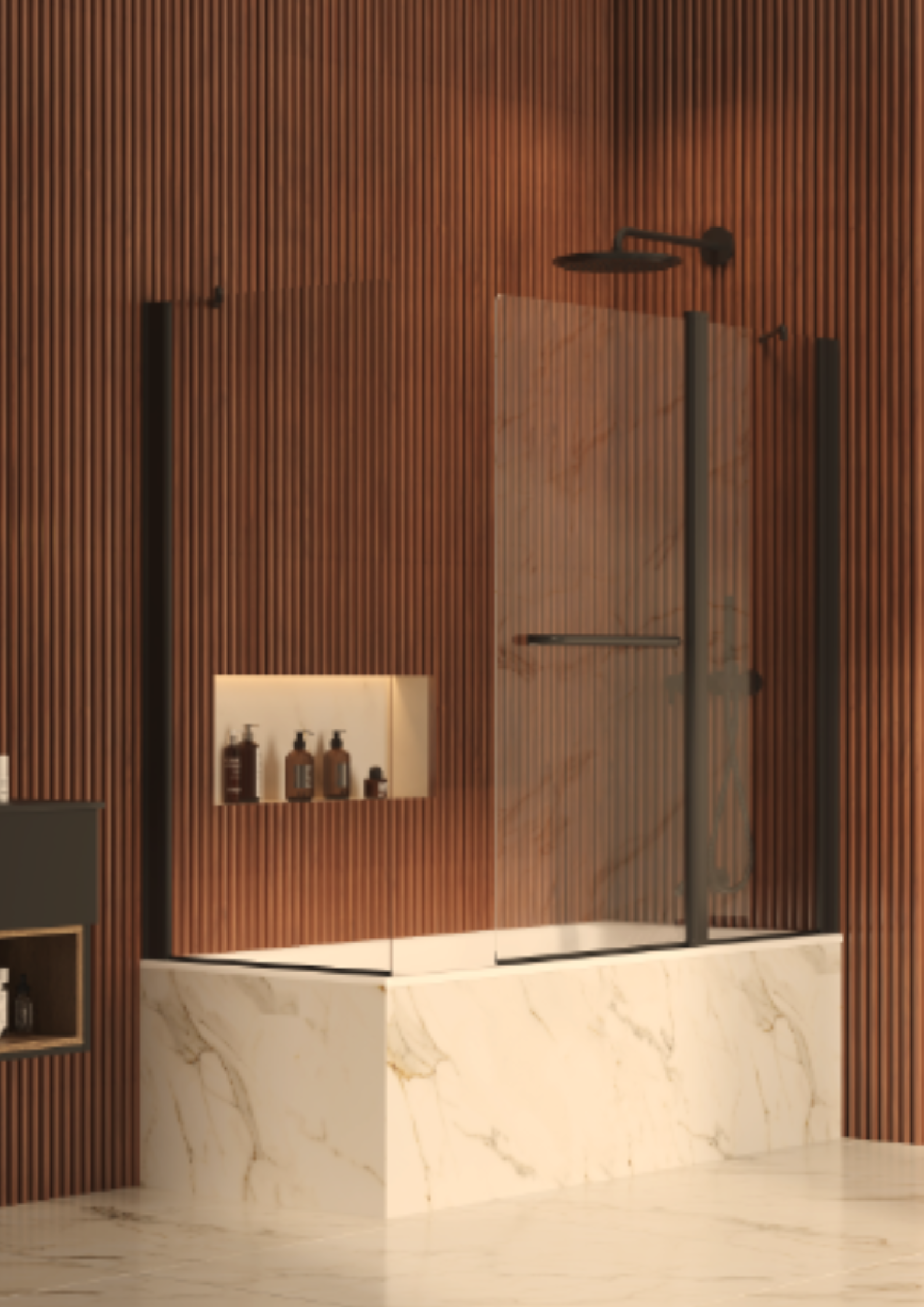 דופן קבועה לאמבטיה 67-70 ס"מ שחור זכוכית שקופה