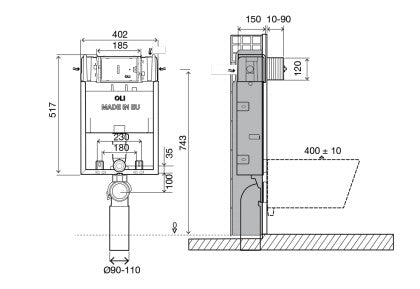 מיכל הדחה פנאומטי סמוי נמוך לקיר גבס EXPERT