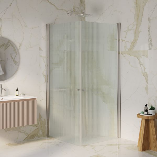 מקלחון פינתי, שתי דלתות על ציר נפתחות פנימה והחוצה