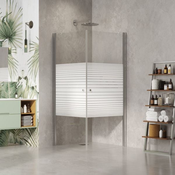 מקלחון פינתי בוסטון 80/80 (76-78) ניקל, 2 דלתות על ציר, פסים