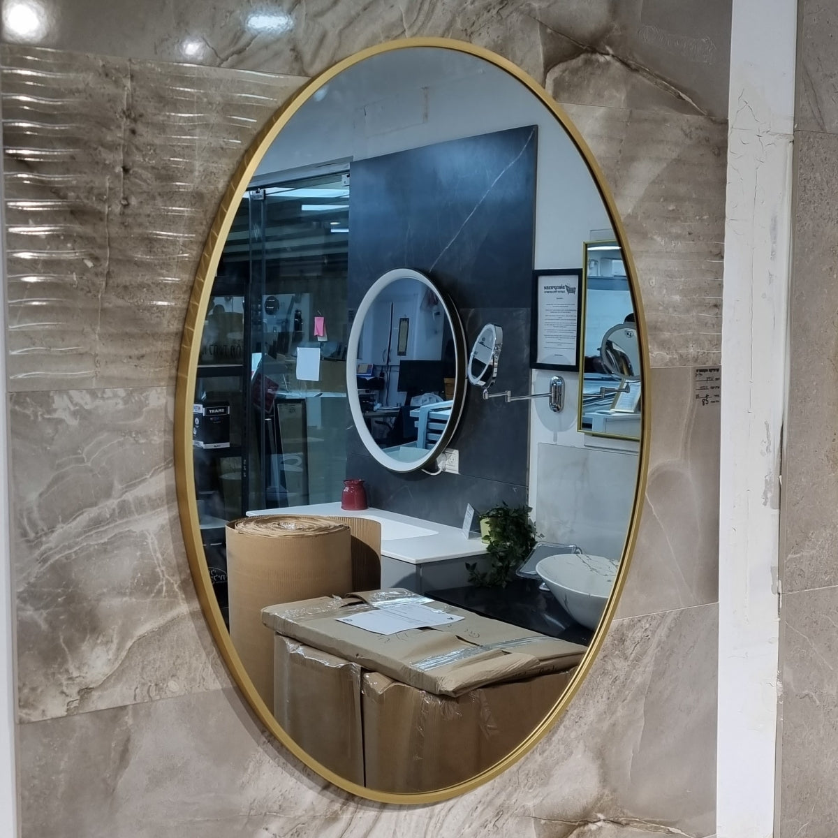 מראה אובלית מסגרת אלומיניום זהב מט 100/60 ניתן לתליה לאורך ולרוחב